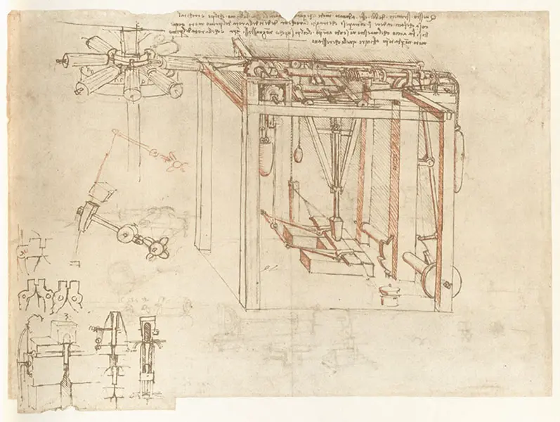 Leonardo da Vinci was a visionary who draw pictures how the following would work: the gun, parachute, helicopter, diving suit, robot, car, and submarine.